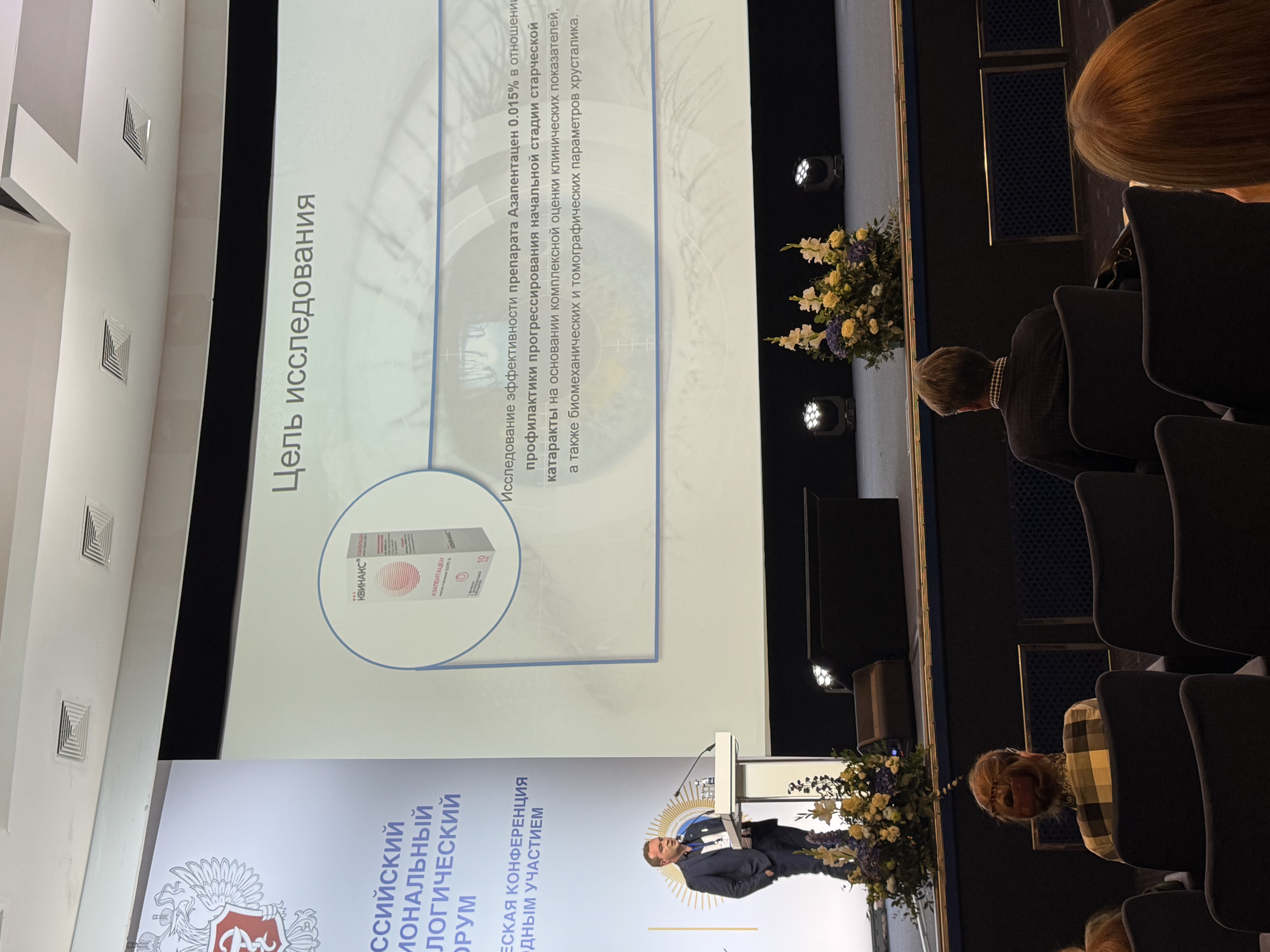 26 сентября в ходе пленарной сессии конгресса состоялся доклад кандидата медицинских наук Зайцева Максима Сергеевича на тему: "Эффективность применения оптических и ультразвуковых методов в комплексной оценке возрастных изменений хрусталика". В своём выступлении Максим Сергеевич представил результаты Наблюдательного открытого исследования, посвящённого оценке эффективности и безопасности препарата Квинакс (Азапентацен) у пациентов с начальной стадией старческой катаракты. Результаты данного исследования, проведённого на базе ФГБУ "Национальный медицинский исследовательский центр глазных болезней имени Гельмгольца" МЗ РФ подтверждают высокую эффективность препарата Квинакс для профилактики и замедления прогрессирования начальной катаракты, что подтверждает обоснованность его широкого использования в клинической практике.